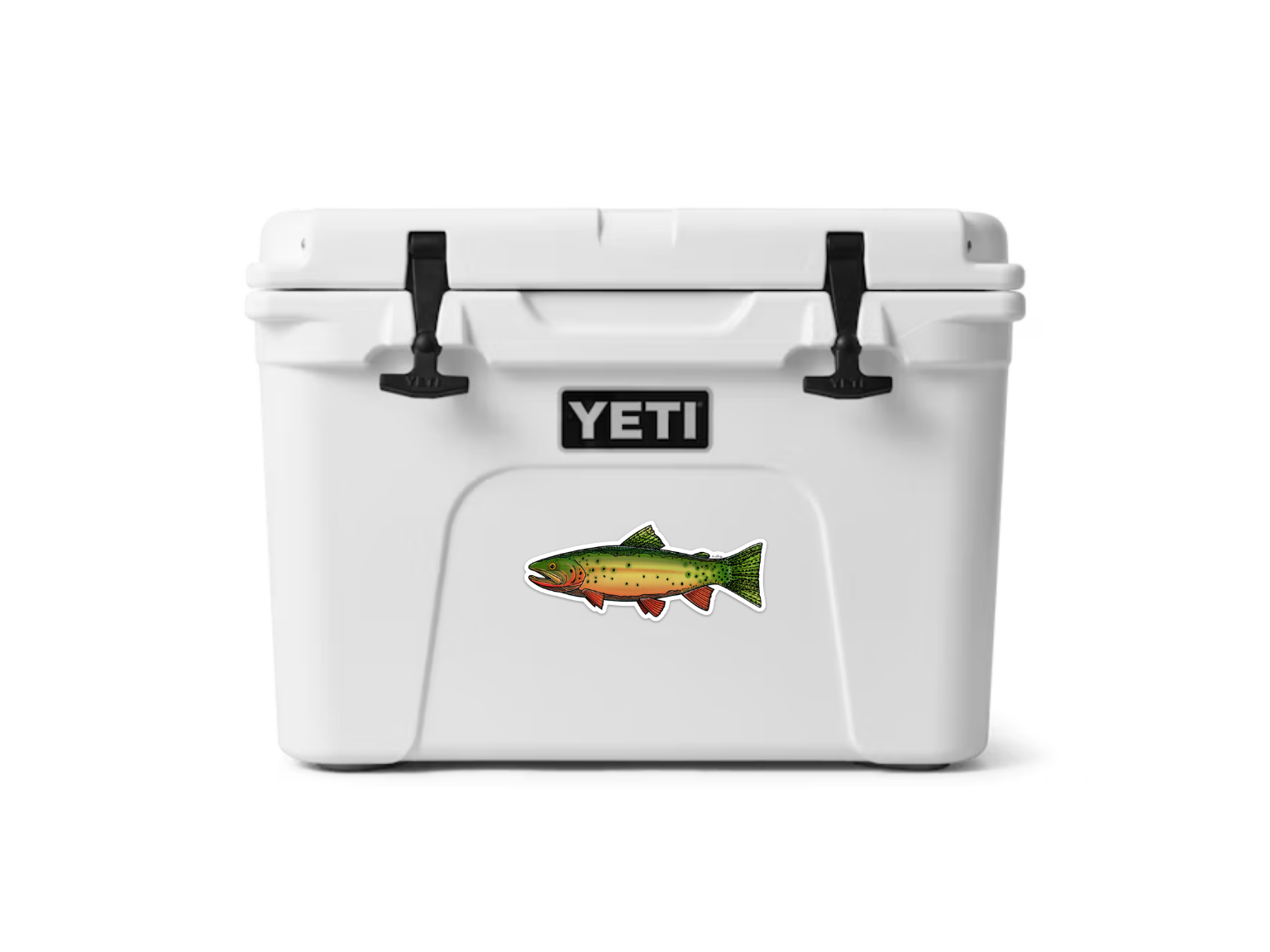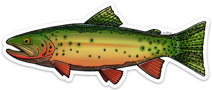 Durable outdoor vinyl waterproof Greenback Cutthroat Trout decal. Hand drawn original artwork! Perfect for your vehicle, boat, trailer, tackle boxes, coolers, water bottle, coffee mug, etc... Dimensions: 6" x 2.48".