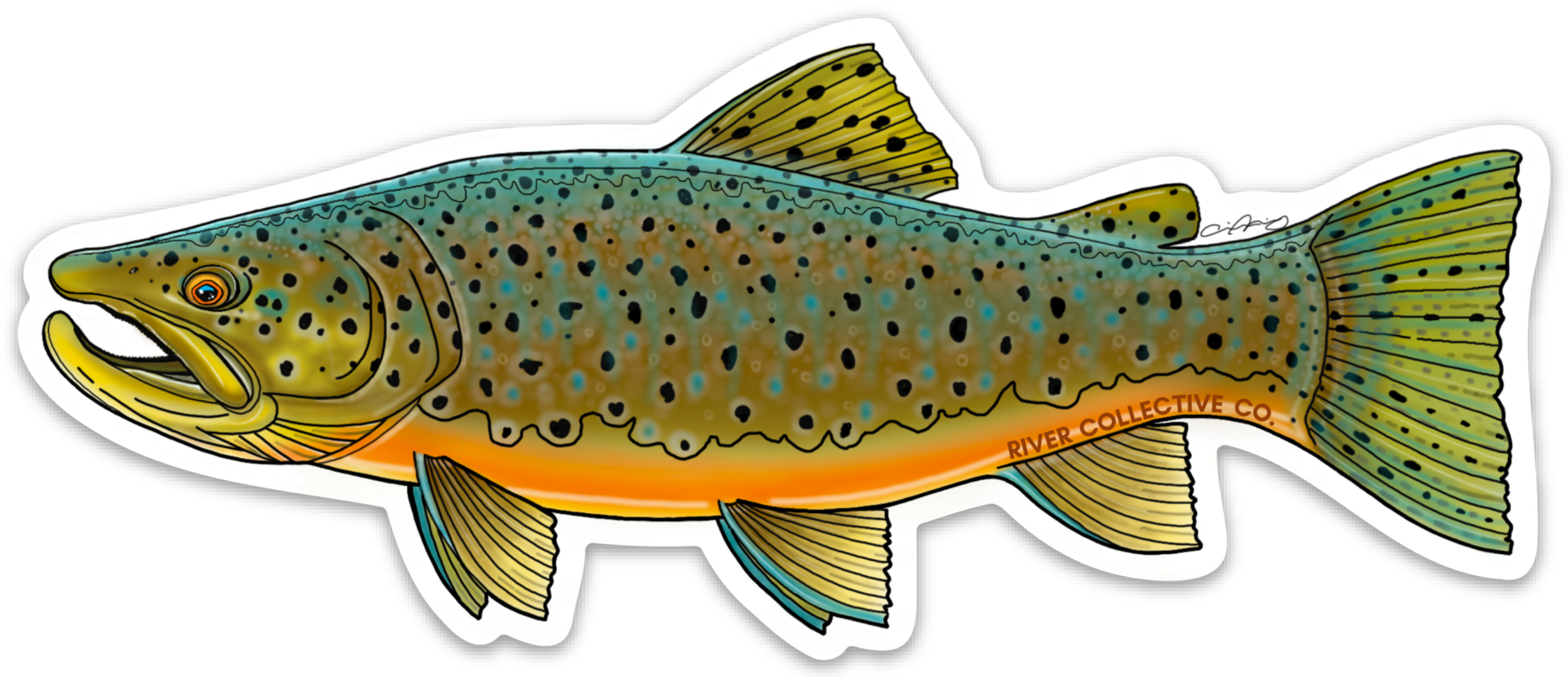 Durable outdoor vinyl waterproof Brown Trout decal. Hand drawn original artwork! Perfect for your vehicle, boat, trailer, tackle boxes, coolers, water bottle, coffee mug, etc... Dimensions: 6" x 2.5".