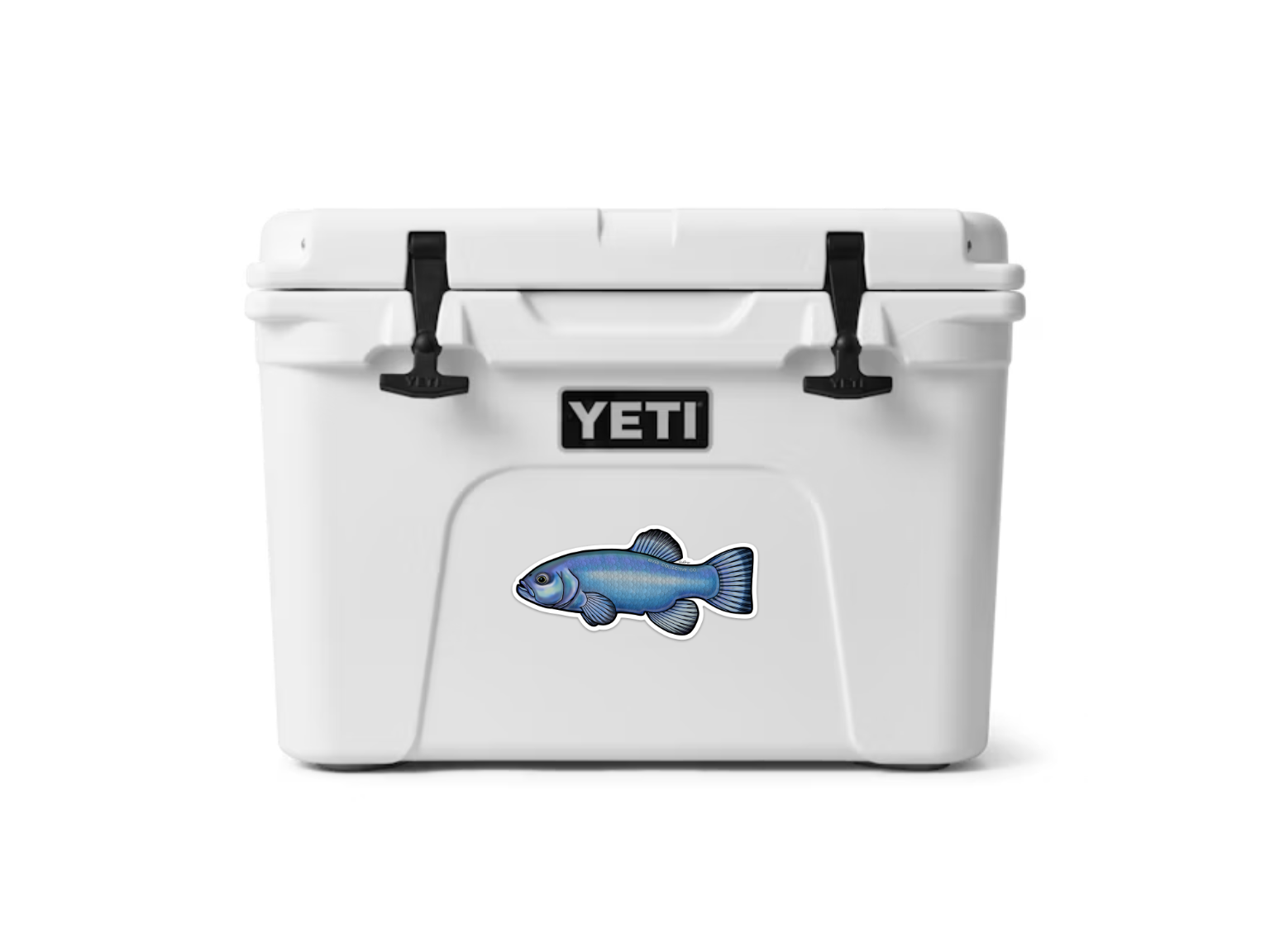 Durable outdoor vinyl waterproof Devils Hole pupfish. Hand drawn original artwork! Perfect for your vehicle, boat, trailer, tackle boxes, coolers, water bottles, coffee mug, etc... Dimensions: 6" x 2.8".