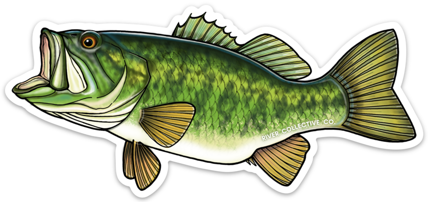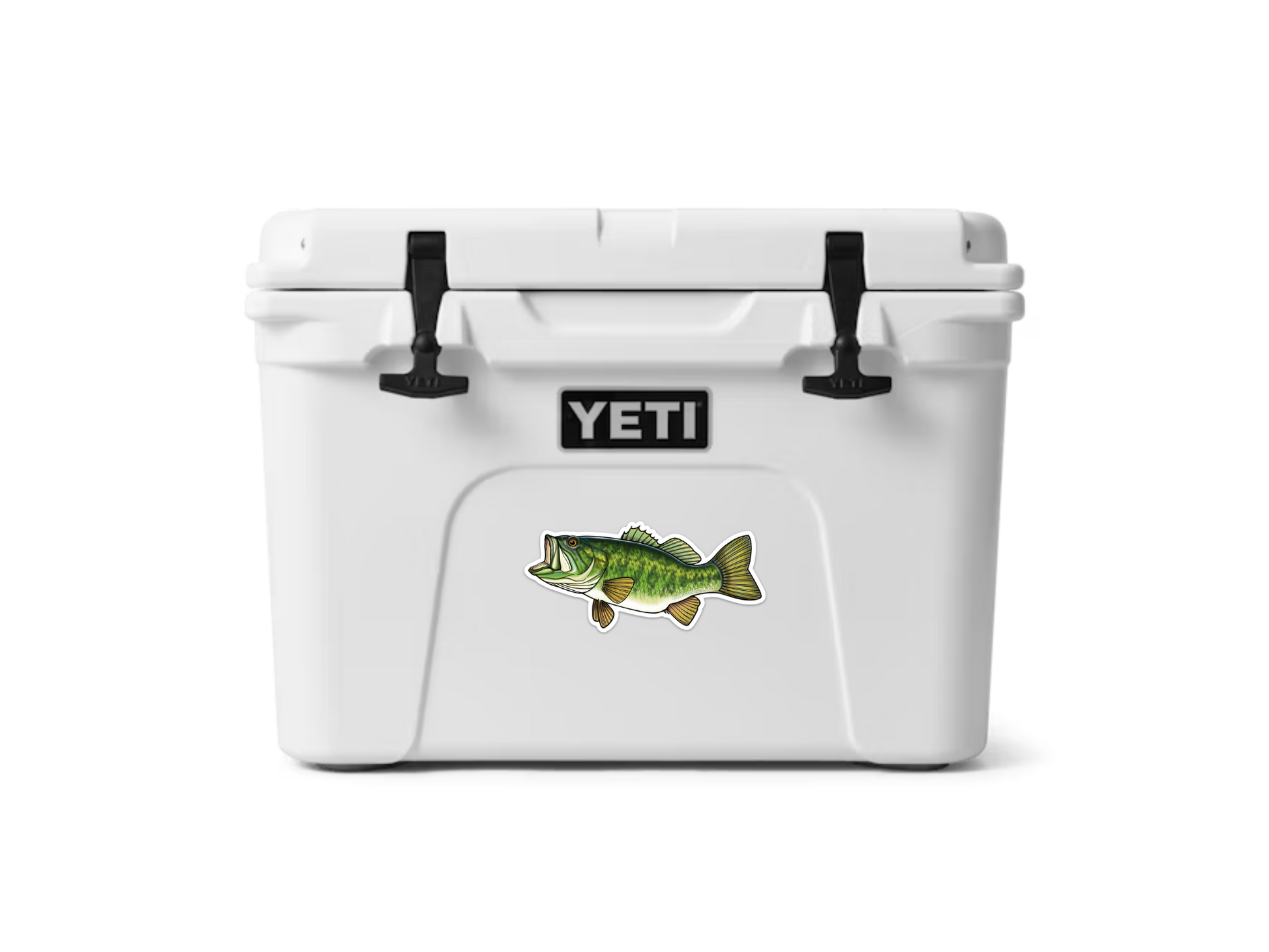 Durable outdoor vinyl waterproof Largemouth Bass decal. Hand drawn original artwork! Perfect for your vehicle, boat, trailer, tackle boxes, coolers, water bottle, coffee mug, etc... Dimensions: 6" x 2.77.".
