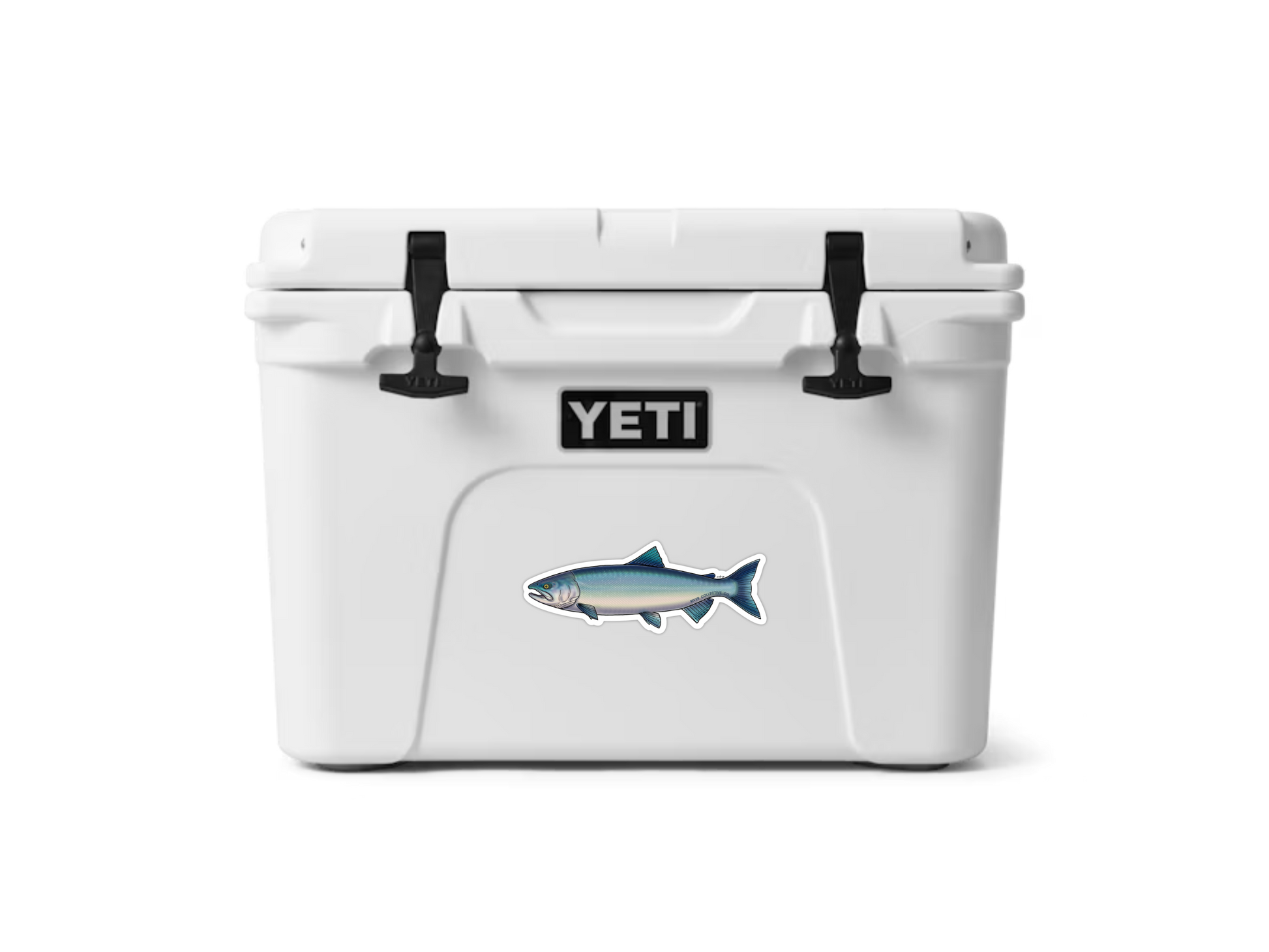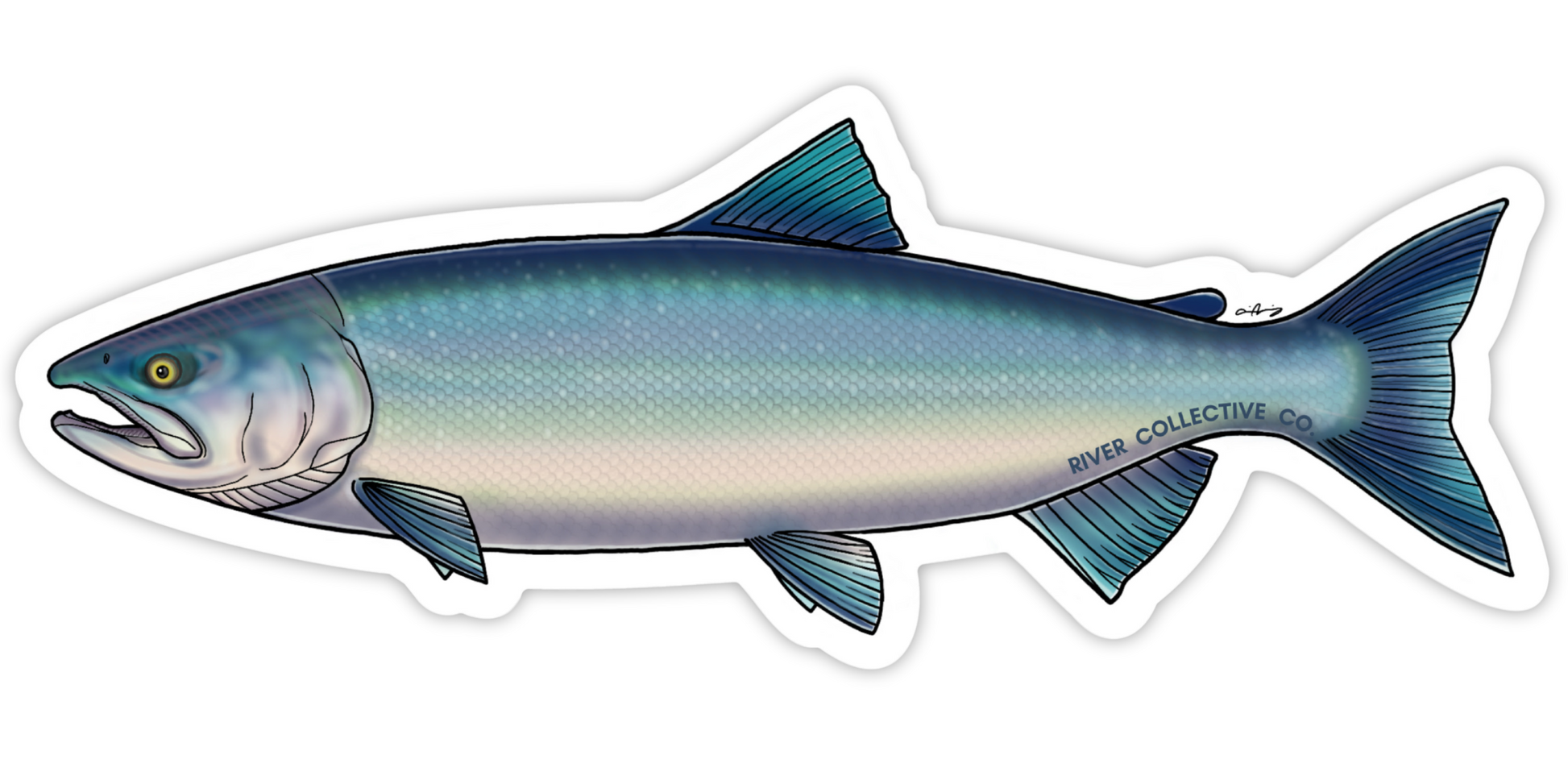Durable outdoor vinyl waterproof Sockeye Salmon decal (Chrome). Hand drawn original artwork! Perfect for your vehicle, boat, trailer, tackle boxes, coolers, water bottles, coffee mug, etc... Dimensions: 6" x 2.3".