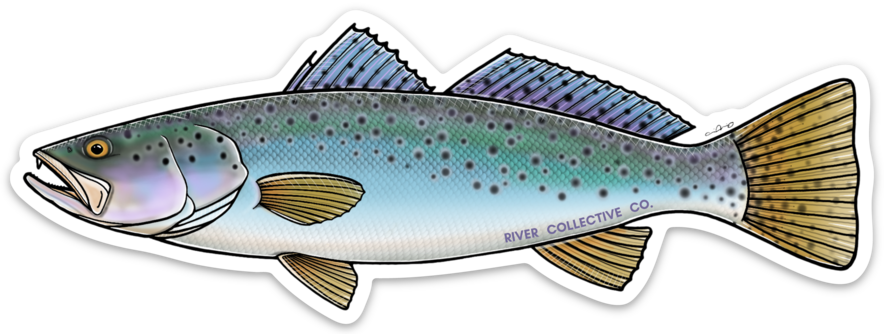 Durable outdoor vinyl waterproof Spotted Seatrout decal. Hand drawn original artwork! Perfect for your vehicle, boat, trailer, tackle boxes, coolers, water bottles, coffee mug, etc... Dimensions: 6" x 2.2".